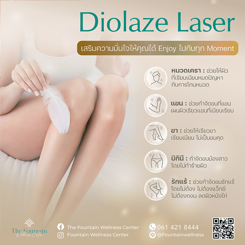 Diolaze หรือ Diode Laser เป็นเลเซอร์กำจัดขนถาวรที่อ่อนโยนต่อผิว โดยแสงเลเซอร์จะจับกับเมลานิน ที่รากขน เส้นขนจึงถูกทำลายและหลุดร่วงออกมา โดยที่ไม่ทำลายผิวหนังโดยรอบ สามารถกำจัดขนได้กับทุกบริเวณ ทุกขนาดเส้นขน และปลอดภัยกับทุกสีผิว เพิ่มประสิทธิภาพในการกำจัดขนได้ดีกว่าเดิม และถนอมผิวมากขึ้น